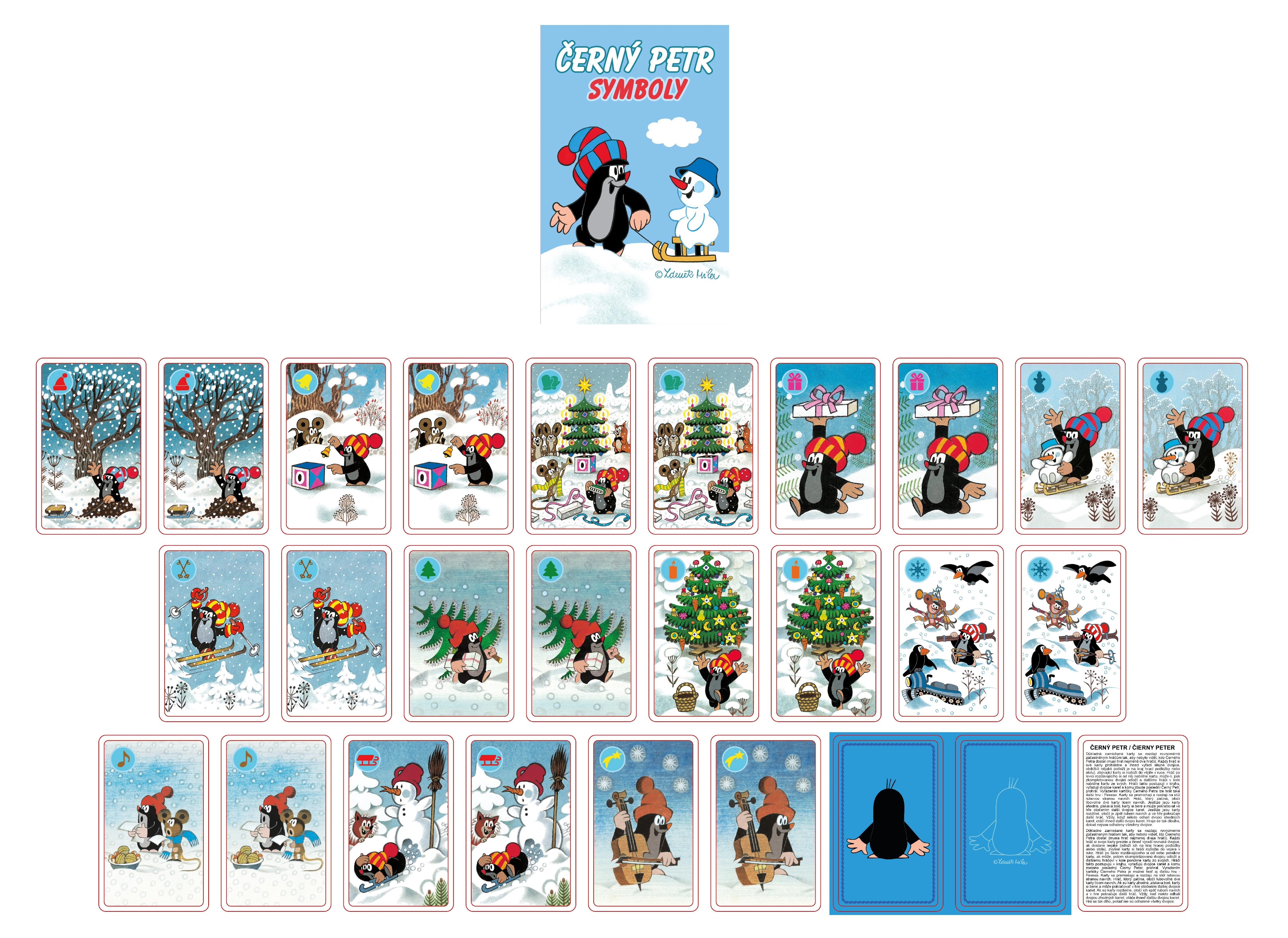 Черният Петър със символни мотиви е непреходна социална игра, която ще харесат както деца, така и възрастни. Благодарение на простите правила ще я научите за миг и можете веднага да започнете да играете. Компактната опаковка с карти с размер 10,5 × 6,5 × 1,5 cm се побира в раница или чанта – идеална за екскурзии, почивка или за бързо забавление у дома.