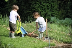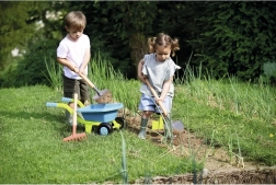 Тази детска количка с размери 69 x 30 x 32 см осигурява не само чудесно забавление, но и практични учебни инструменти за градинарство. Изработена е от висококачествена пластмаса, което я прави издръжлива и подходяща за игра навън.