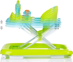 Проходилката се сгъва и монтира лесно, така че без усилие можете да я съхранявате дори в по-малко пространство. 3-те височинни позиции на седалката позволяват адаптиране към текущия ръст на детето, докато предните въртящи се колелца на 360° улесняват движението из стаята.