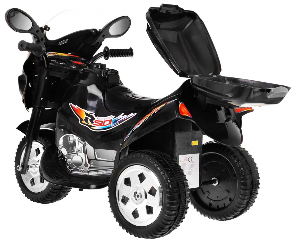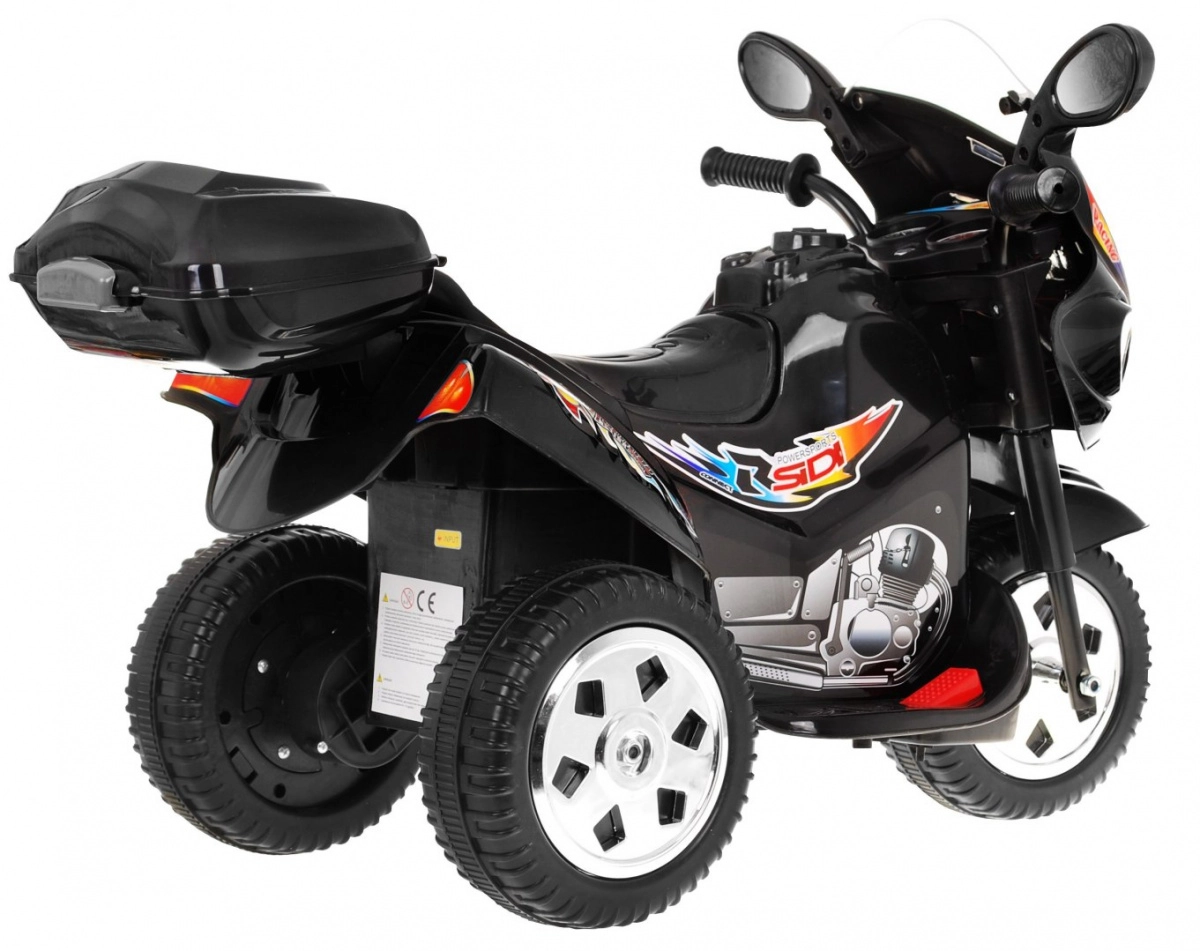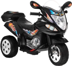Лек и стабилен детски мотоциклет на три колела предлага безопасно каране за най-малките. Благодарение на мотор 18 W, батерия 6 V, гумиран протектор на колелата и предни светлини децата ще се забавляват както у дома, така и навън. Налични са клаксон и мелодии за още по-голямо удоволствие от карането.