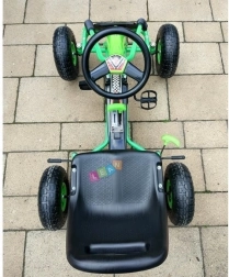 Подарете на децата динамично каране на открито с педалната картинг кола A-15. Благодарение на надуваемите колела, ръчната спирачка за двете задни колела и здравата метална конструкция карането е стабилно, безопасно и забавно. Автоматичен свободен ход напред/назад, лагери в колелата и регулируема седалка се адаптират към ръста на детето и осигуряват комфорт и дълъг живот.