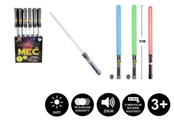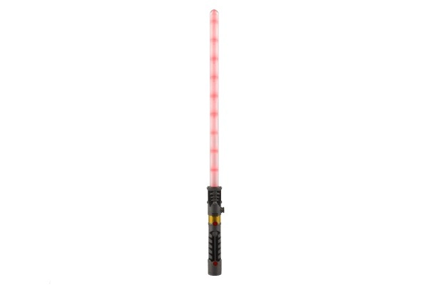 LED острието свети, а звукът се променя според движението. При попадение мечът издава ефект и светва, което прави действието живо и вълнуващо.