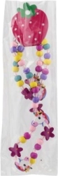 Благодарение на еластичната изработка (а при някои варианти и детска щипка във форма на ягодка) бижутата се слагат лесно и стоят стабилно. Перфектно допълват тоалета за детска градина, празненства и игра, като едновременно развиват усета за цветове и стил.