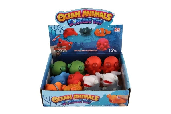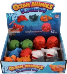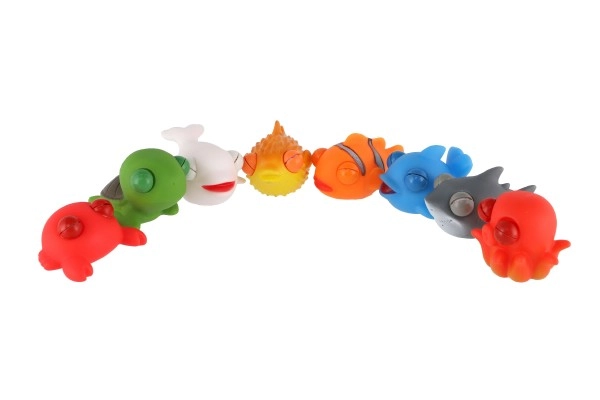 Микс от любими морски създания (рибки, акула, костенурка, кит, октопод и др.) е подходящ за ваната, душа и за суха игра. Издръжливата изработка се почиства лесно, а благодарение на компактния размер 9–10 см играчките са подходящи за малки детски ръце и като антистрес аксесоар на бюрото.