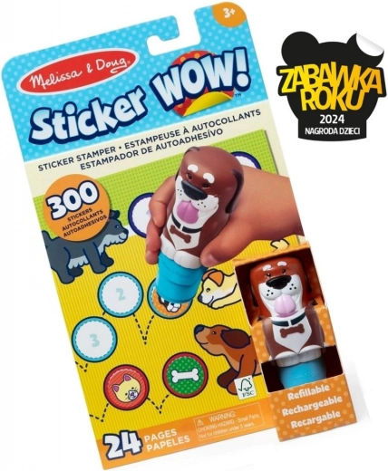 Sticker Wow! пази всички лепенки безопасно вътре в печата, така че не е нужно да се притеснявате от загуба или бъркотия. Комплектът съдържа 300 разнообразни лепенки с мотиви на кучета, кокали, купички и други любими аксесоари. Идеален за деца от 3 години, които искат да развиват своето въображение и фините моторни умения чрез забавна игра.