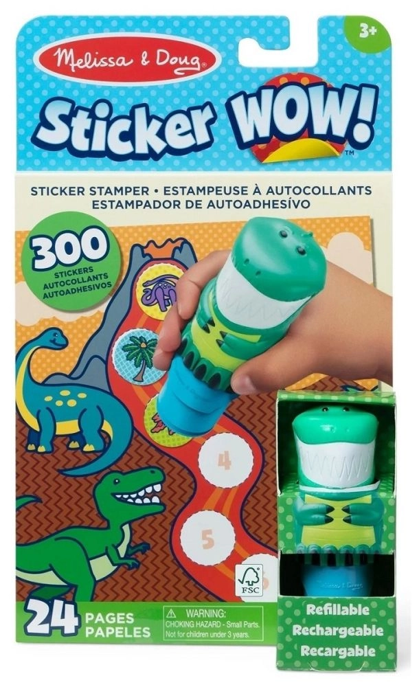 Печатът във формата на динозавър позволява лесно създаване на цветни стикери с ярки праисторически мотиви. Децата могат да създават собствени сценки и истории.