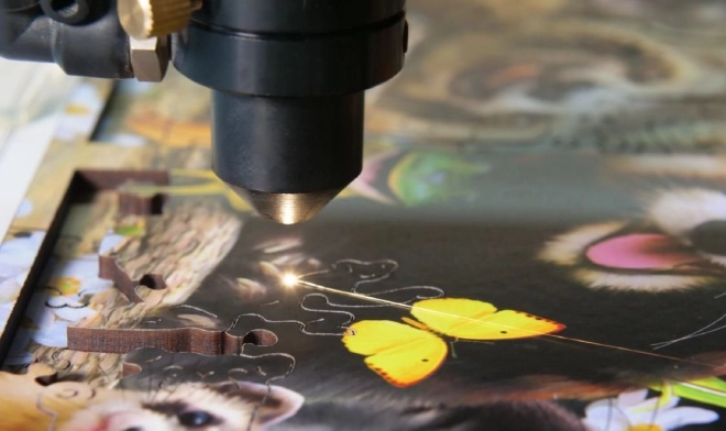 Пъзелът съдържа елементи, изрязани във формата на животни, сгради или предмети, които могат да стоят самостоятелно като малки фигурки.
