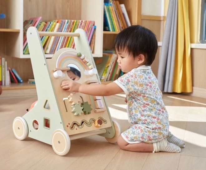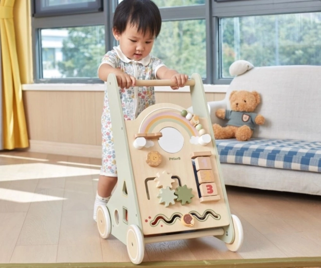 Стилната дървена проходилка за прохождащи деца от серия PolarB на Viga съчетава опора при първите стъпки и многофункционален активен панел за игра и учене. Тук ще откриете зъбни колела, сортиране на форми, огледалце, мъниста, плъзгащи се елементи и мини дъска. Подпомага фината и грубата моторика, координацията и увереността при ходене.