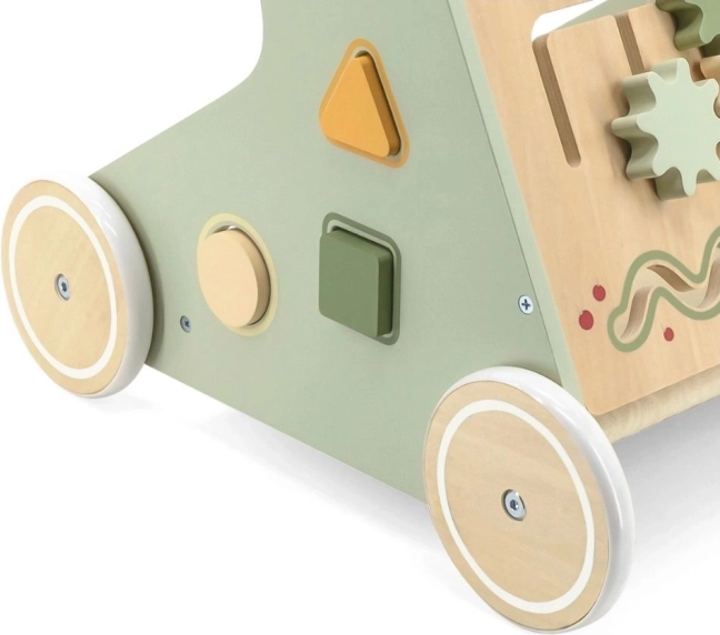Здравата дървена конструкция и гладките колелца помагат на детето уверено и безопасно да тренира ходенето и равновесието.