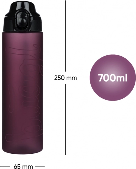 Капацитет 700 ml в компактно тяло (ок. 250 × 65 mm) се побира в раница и държач за бутилка. Идеална за училище и спорт.