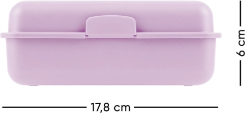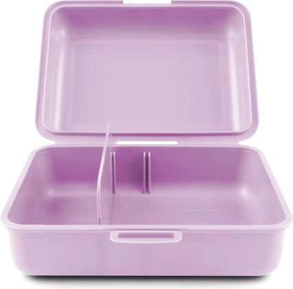 Тази практична пластмасова кутия за храна в атрактивен лилав цвят е идеална за ежедневното хранене в училище, на работа или по време на път. Кутията предлага достатъчно място за любимите ви закуски и разполага с разделителна преграда, която позволява отделно съхранение на храните. Вземете различни продукти със себе си, без да се смесват.