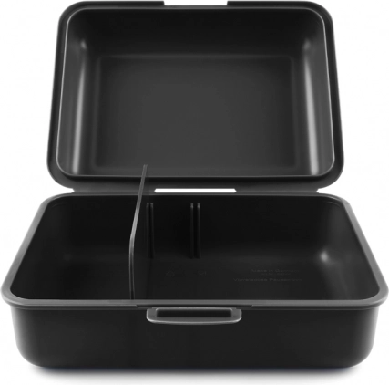 Изпитайте удобство и стил с тъмносивата кутия за закуска от Baagl. Тази пластмасова кутия е оборудвана с лесно затваряне с един заключващ механизъм за запазване на свежестта и безопасността на храната ви. Разделителната преграда ви позволява да отделяте различни видове храни, което е идеално за опаковане на обяди за път.