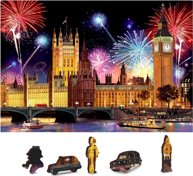 Пъзелът предлага две възможности за подреждане - по изображението на Нощен Лондон или по повтарящия се модел на задната страна.