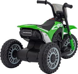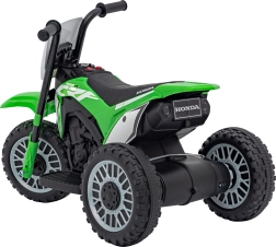 Стилен детски акумулаторен мотор, вдъхновен от легендарния HONDA CRF 450R, предлага стабилно каране на 3 колела, тих мотор 30 W, издръжливи колела с гумен протектор и забавен клаксон и звуци при старт. Идеален за първи шофьорски преживявания у дома и в двора.