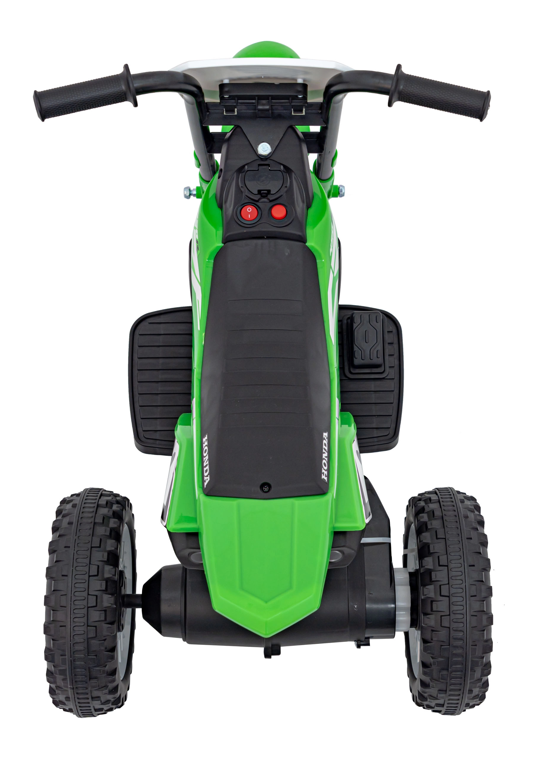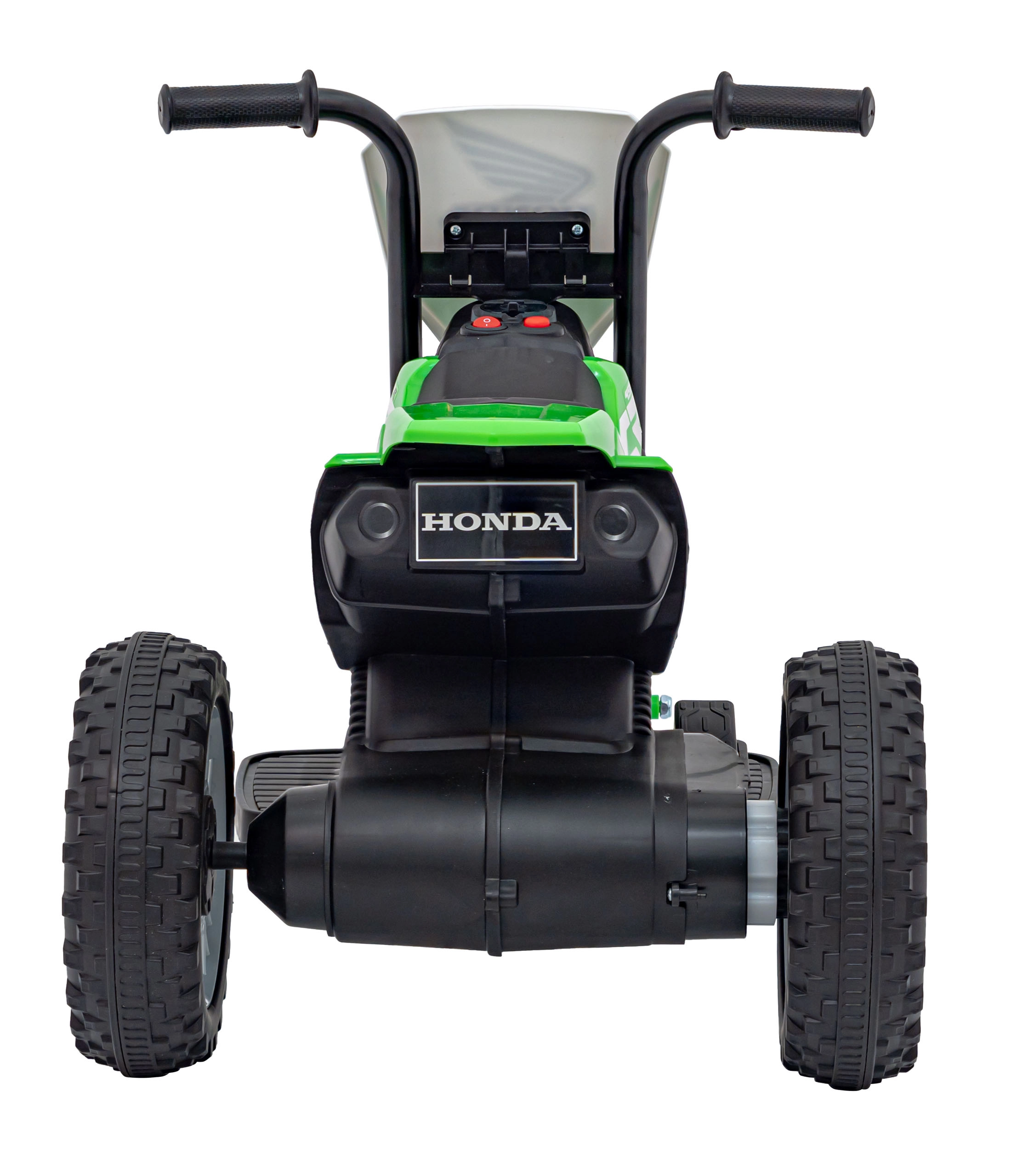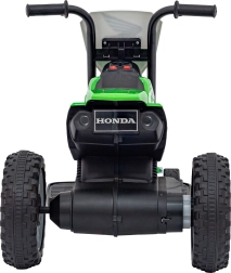 Този детски електрически мотор е отличен избор за малки състезатели. Благодарение на трите широки колела карането е по-стабилно и безопасно, гуменият протектор осигурява по-добро сцепление и по-тиха работа. Реалистичните детайли в стил HONDA стимулират въображението и радостта от карането.
