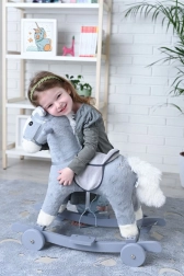 Очарователното плюшено люлеещо конче 2в1 с колелца в сив цвят ще зарадва всеки малък ездач. Благодарение на комбинацията от люлеене и каране предлага двойно забавление, докато мекият плюш и стабилната дървена основа осигуряват комфорт и безопасност. Товароносимост 50 кг, за деца от 3 години, с CE сертификация.