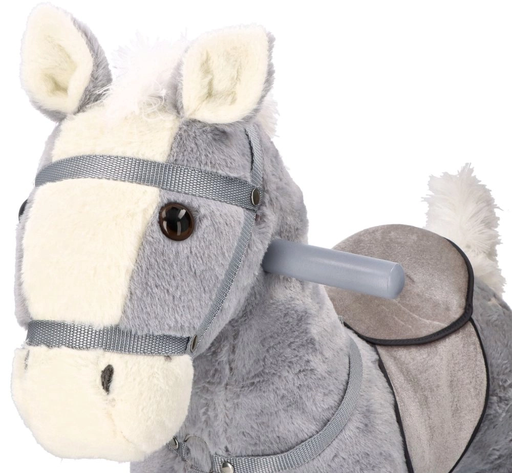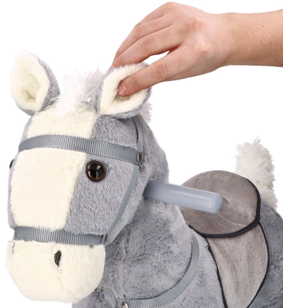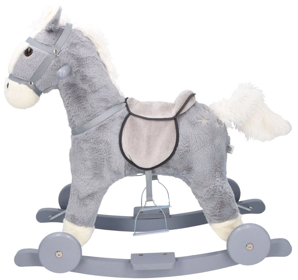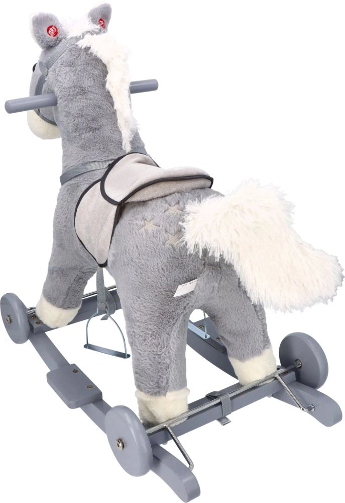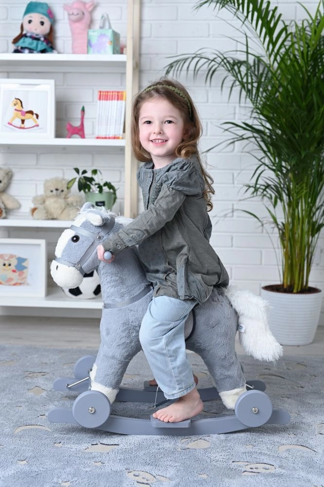 Насладете се на класическо люлеене и разходки из стаята. Люлеещото конче 2в1 с колелца съчетава доказана дървена конструкция с мек плюш, удобно седло и безопасни дръжки. Сивият дизайн пасва на всеки детски стаи и стимулира въображението и развитието на равновесието.