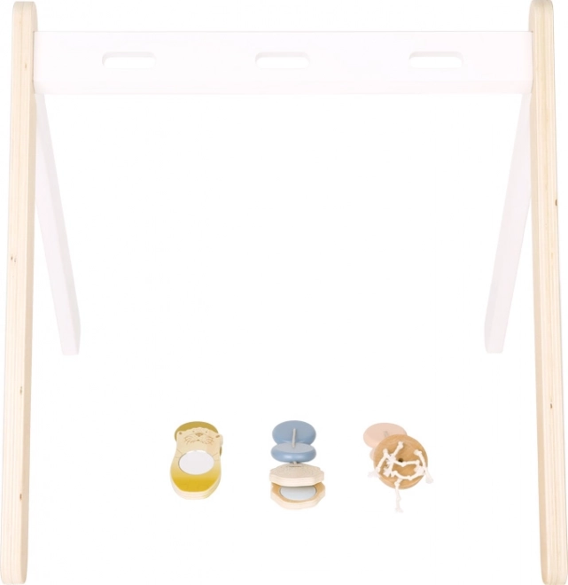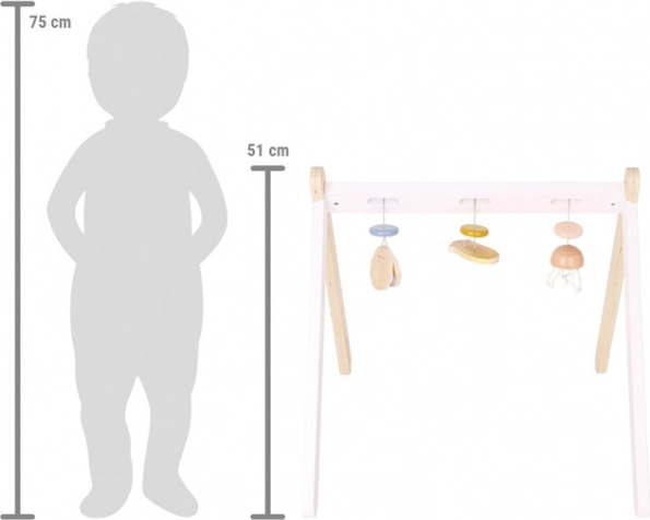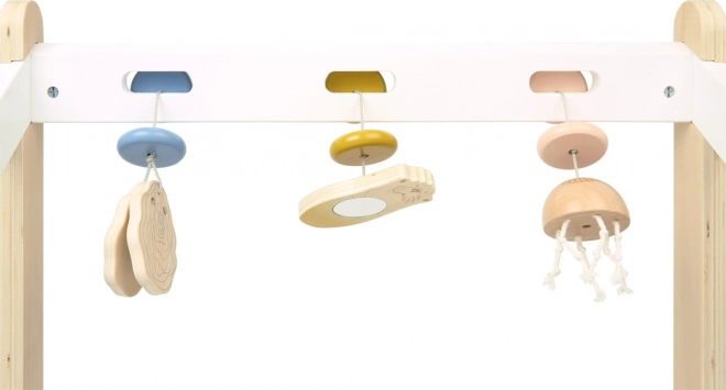 Бебешката гимнастика Seaside е уникална играчка, която комбинира естествени материали и нежни модерни цветове за сензорно обогатяване на вашето дете. Играчката включва морска видра с огледалце за визуални стимули, медуза с пипала за тактилни усещания и весела стрида за акустични открития. Дизайнът е създаден с оглед на възрастовата пригодност, така че подпомага сензорното развитие без претоварване.