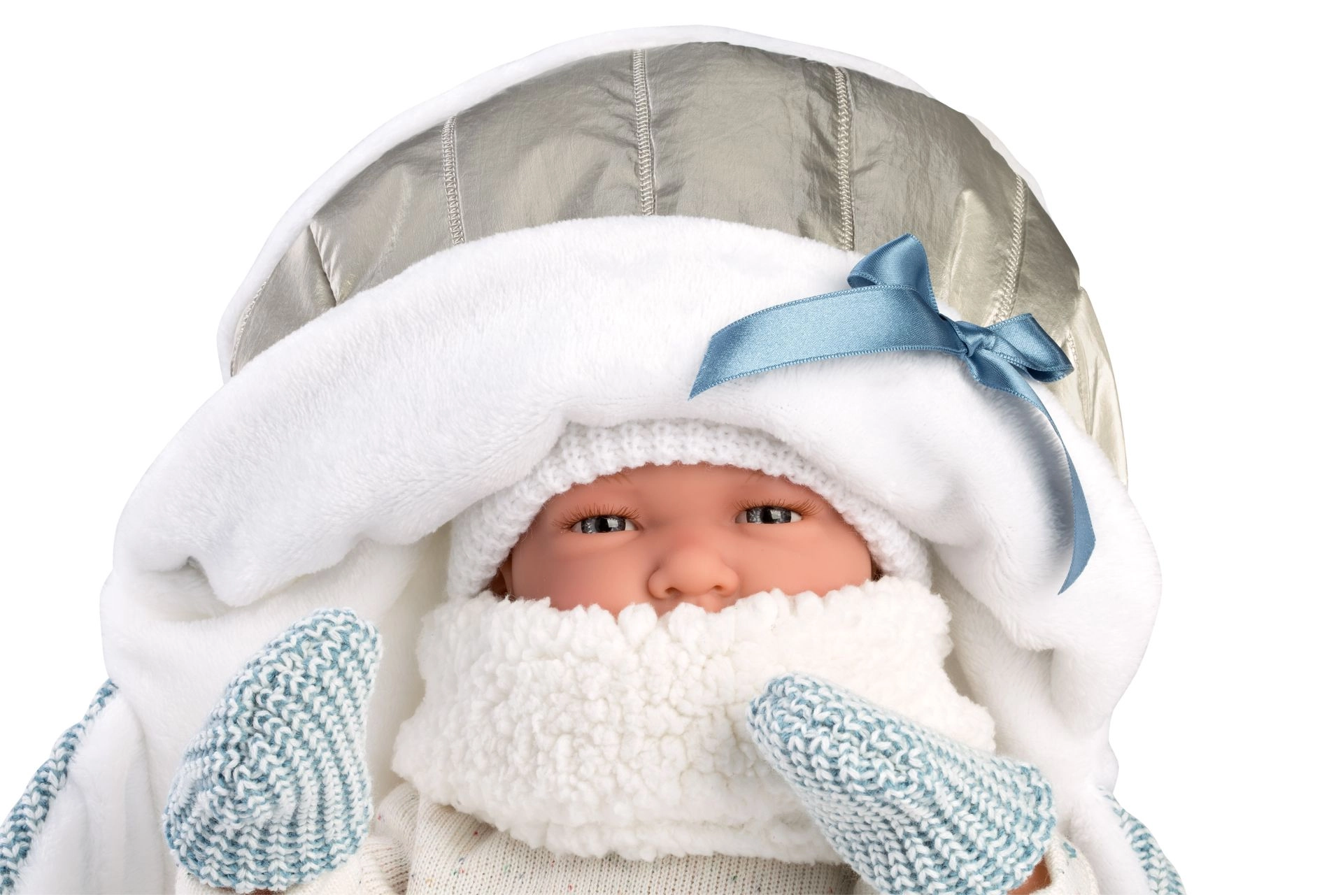 Поставете удобно куклата и я вземете със себе си – меката подложка с качулка и практични презрамки я предпазва и улеснява пренасянето.