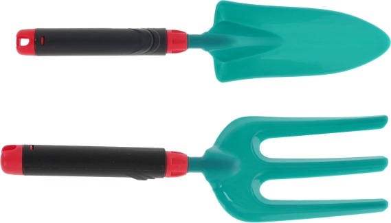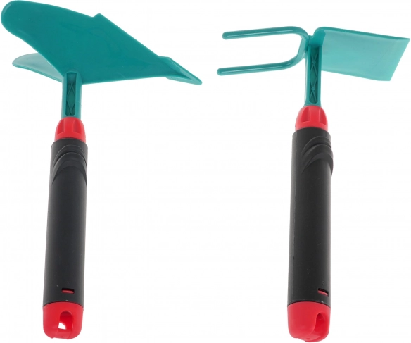 Практичните сваляеми дръжки улесняват пренасянето и съхранението на инструментите. Леката и издръжлива конструкция е идеална за първите градинарски опити в двора, на балкона и в саксия.