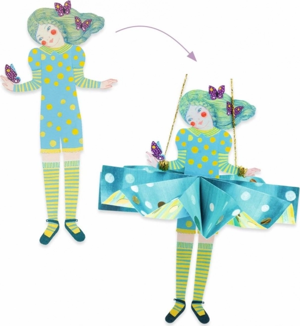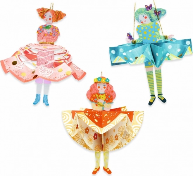 Изживейте радостта от създаването с този уникален комплект от DJECO. Тази активност е не само лесна, но и изобретателна и ви позволява да направите три прекрасни момиченца от хартия. Всяко от тях ще има своя собствена сияйна премяна, която сглобявате сами.