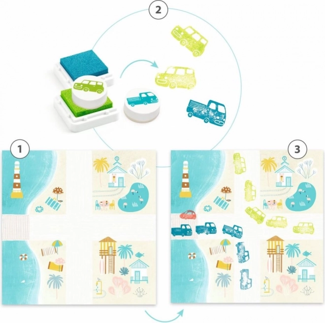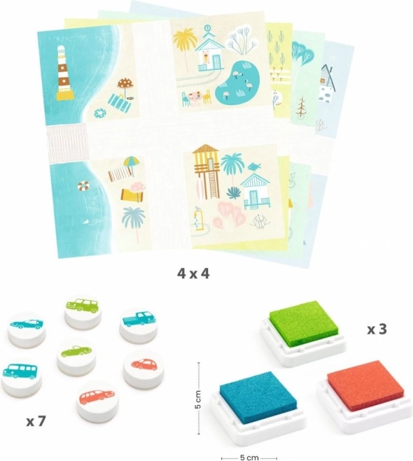 Комплектът печати Коли от DJECO е перфектен инструмент за малките артисти и съдържа всичко необходимо за създаване на прекрасни картинки с автомобилни мотиви. Децата могат да създават свои собствени сцени и истории с помощта на цветните печати и картите.