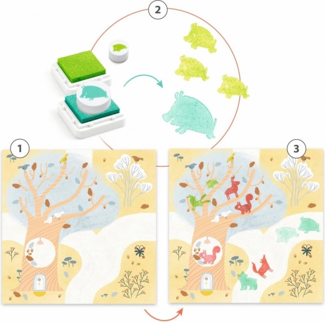 Комплект печати с мотиви на животни, който ще зарадва всяко дете. С този комплект децата могат да създават сладки картинки и едновременно да развиват своята креативност.