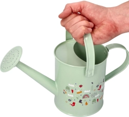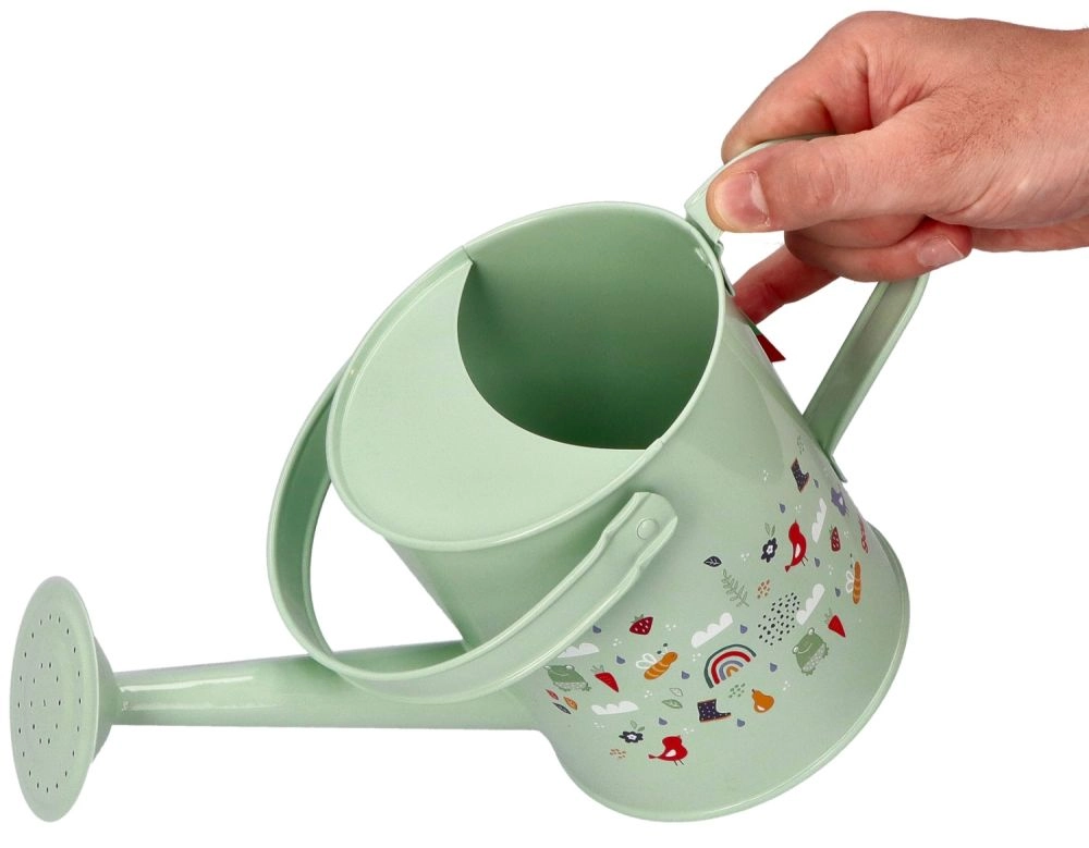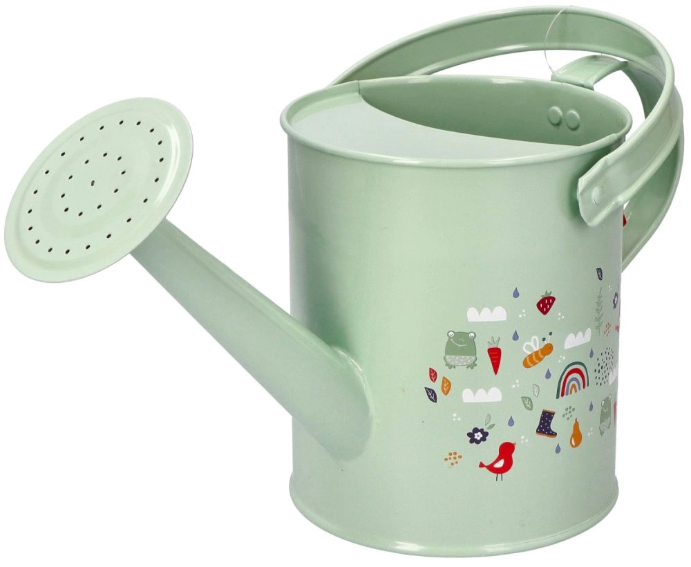 Тази метална градинска лейка в нежни цветове и с очарователни изображения е идеалният помощник за малки градинарки и градинари. Изработена е от качествен и здрав материал, устойчив на повреди, което гарантира дълъг живот дори при честа употреба. Дръжката на лейката може да се сгъва за лесно наливане на вода, което прави поливането на цветята лесно и забавно.