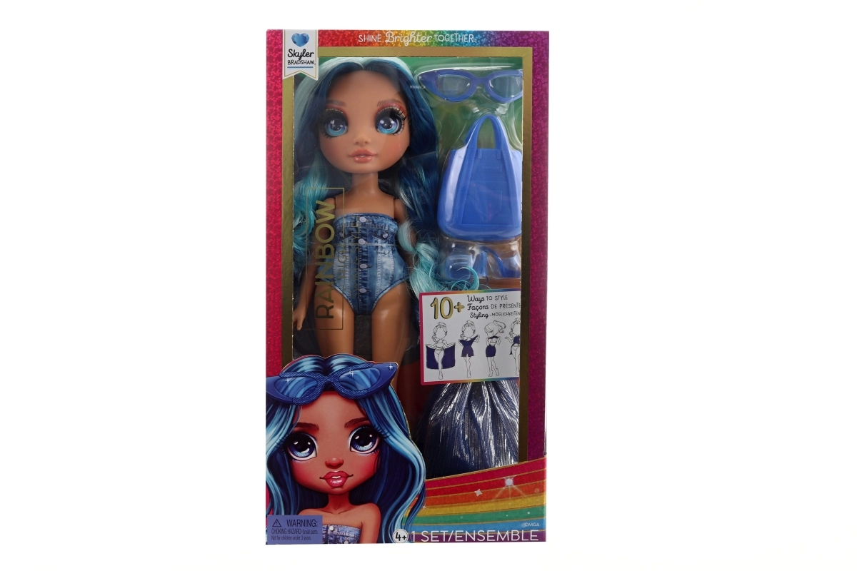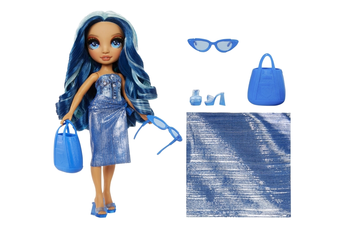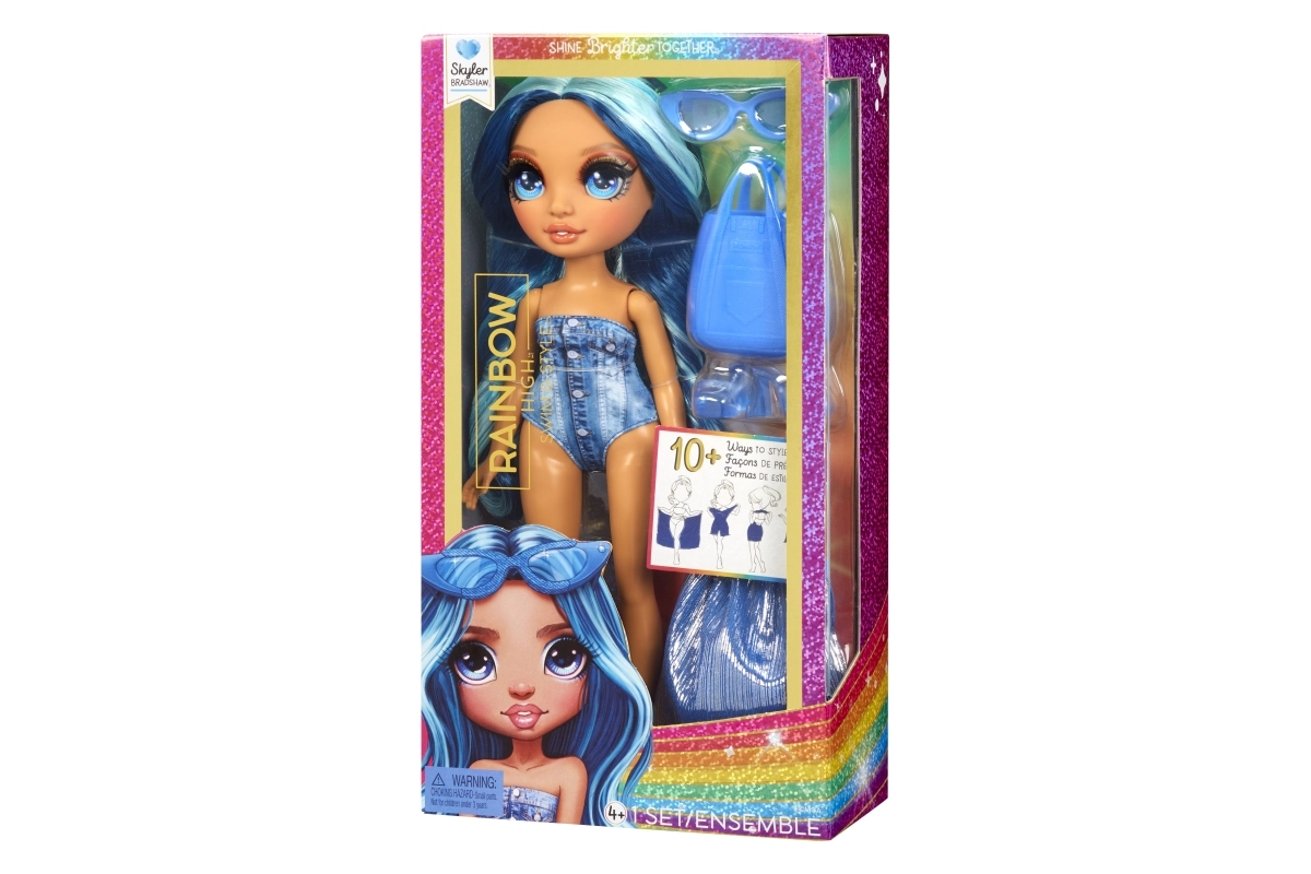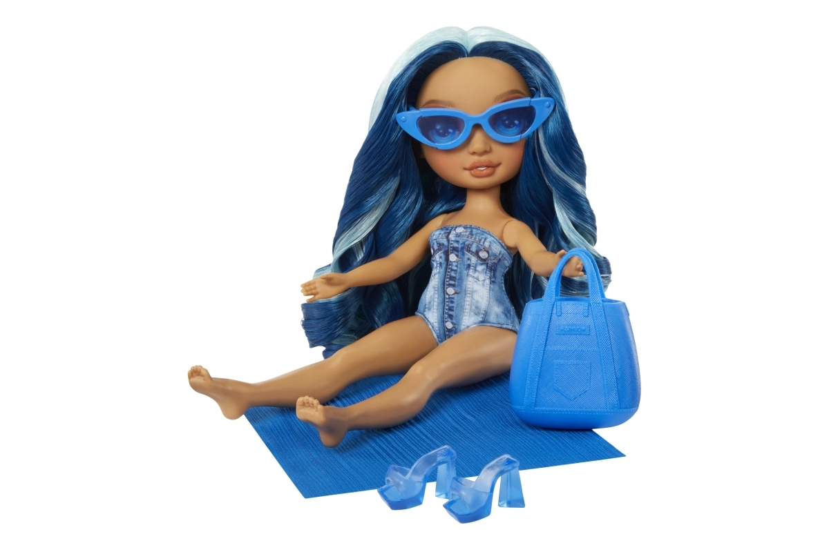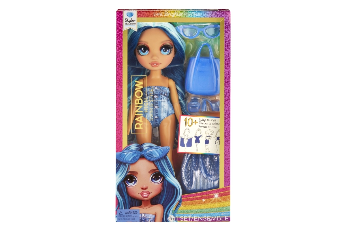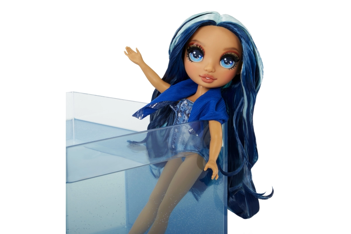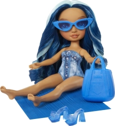 Куклата СКАЙЛЪР от колекцията Rainbow High Swim & Style впечатлява с дълга синя коса, тренди бански и множество аксесоари за безкрайни възможности за стилизиране. Благодарение на артикулираните крайници лесно заема пози и е готова за всяко лятно приключение.