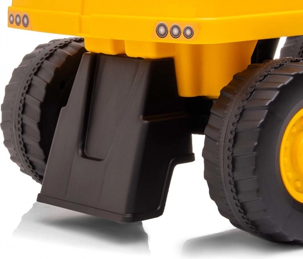 Безопасността е осигурена от шаси с два елемента против преобръщане и метални оси на колелата за по-висока издръжливост. Леката, но здрава пластмасова конструкция с ергономична форма на седалката осигурява удобство и за по-малки деца. Под седалката има голямо отделение за съхранение на дребни играчки. Возилото може да се използва и като проходилка за бутане при първите стъпки.