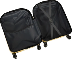 Четири плавни колела и изтегляща се телескопична дръжка осигуряват удобно водене дори за малки ръце. Вътрешното разпределение с разделител с цип и еластични колани държи вещите на място, за подредено и безопасно опаковане.