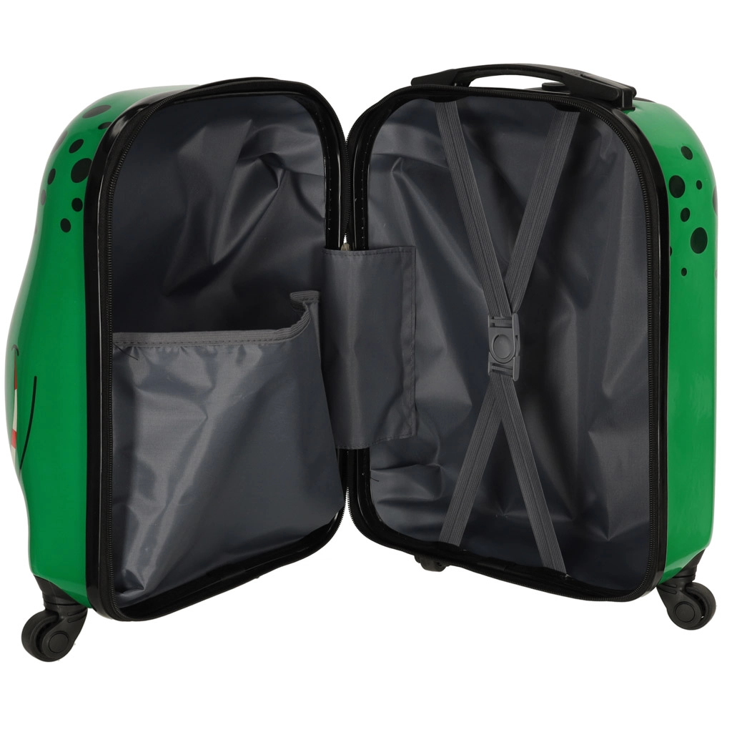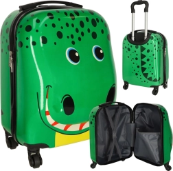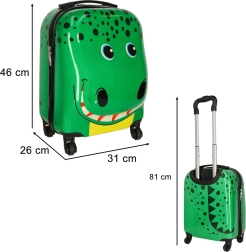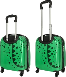 Този лек и издръжлив детски куфар е идеален като ръчен багаж. Лъскавата зелена повърхност с весела графика на крокодил привлича децата, а родителите оценяват практичното оборудване за комфортно пътуване.