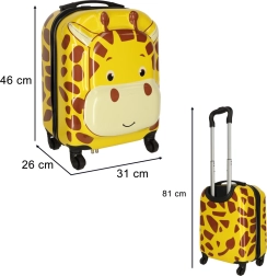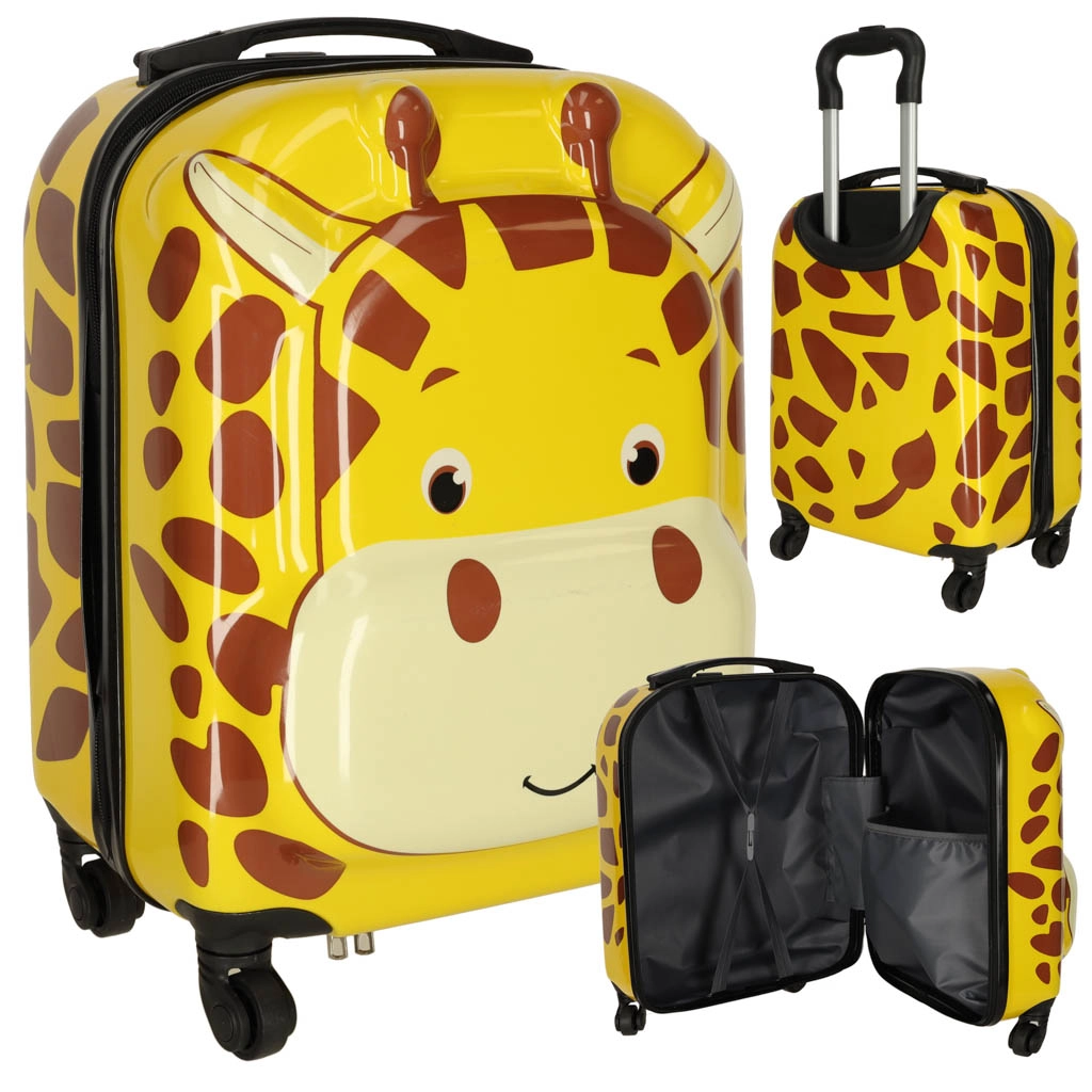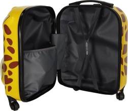Веселият принт с жираф носи детска радост на пътя, а детето веднага ще обикне куфара – лесно се разпознава сред другия багаж.