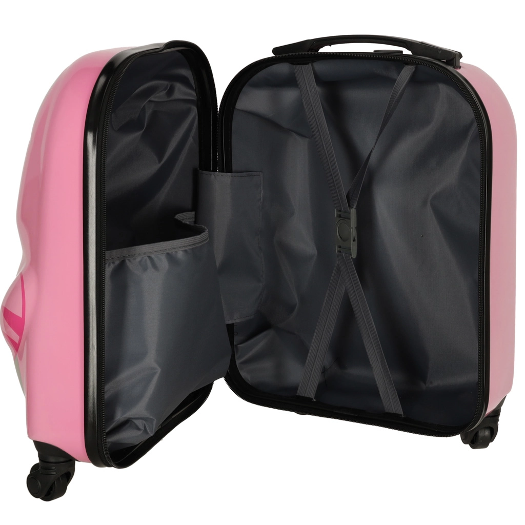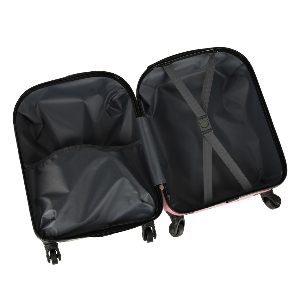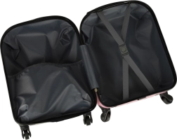 Интериорът е разделен на две части: едната страна има преграда с цип, а другата кръстосани ленти за сигурно закрепване на вещите. Благодарение на добре обмисленото разпределение в куфара се побира всичко необходимо – от дрехи до любими играчки.