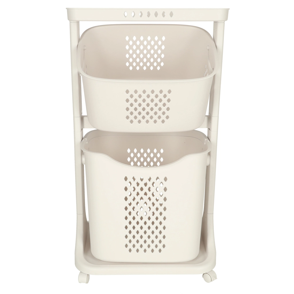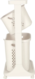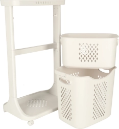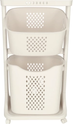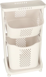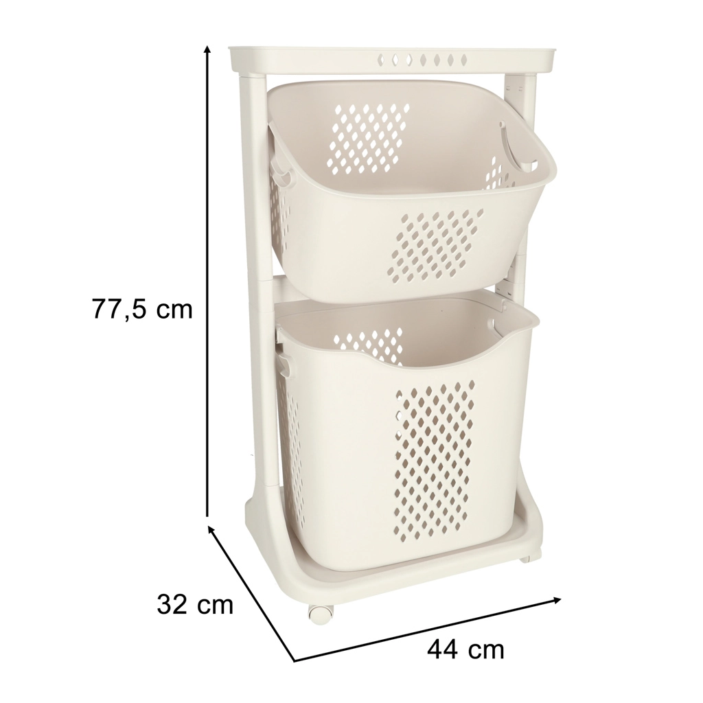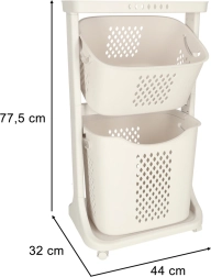 Елегантно и функционално решение за ежедневната организация у дома. Двата просторни коша позволяват удобно сортиране на прането или съхранение на играчки и дребни предмети. Перфорираният модел подпомага циркулацията на въздуха, така че съдържанието остава свежо по-дълго.