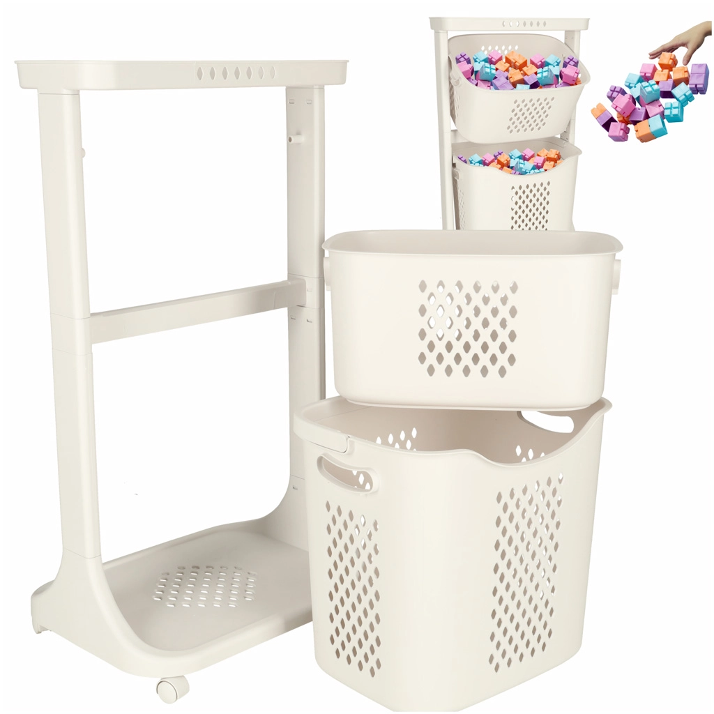 Горният и долният кош предоставят достатъчно място за пране, играчки или текстил. Благодарение на подвижната конструкция ще ги напълните, пренесете и изпразните без усилие.