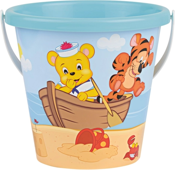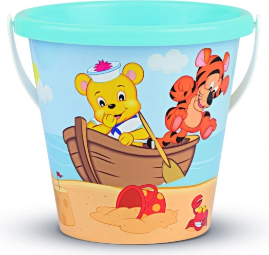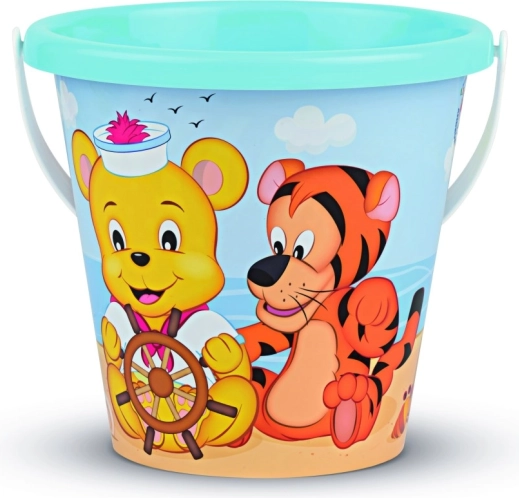 Очарователна и устойчива кофичка с весели картинки на меченце и тигърче ще придружава децата при игра на плажа и в пясъчника. Благодарение на компактните размери се държи отлично и се пренася лесно, а здравото ухо осигурява удобно носене на мокър пясък или вода.