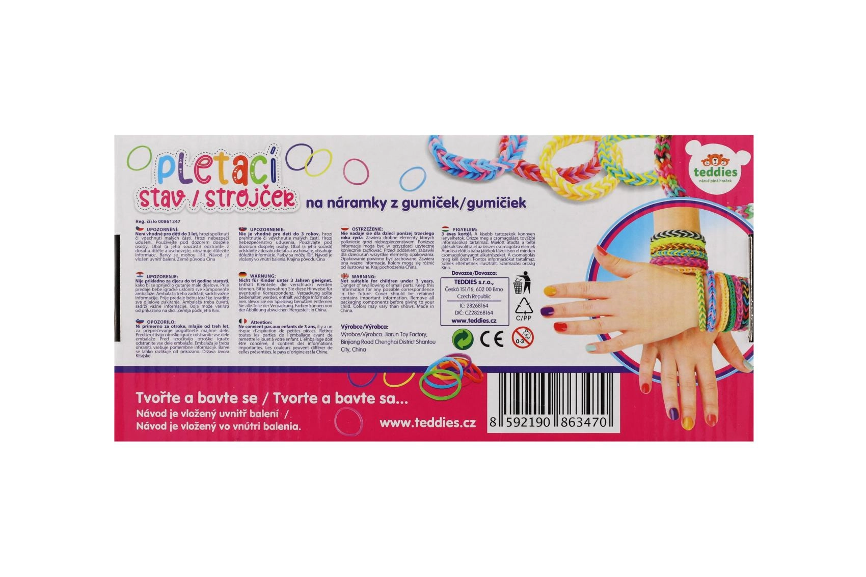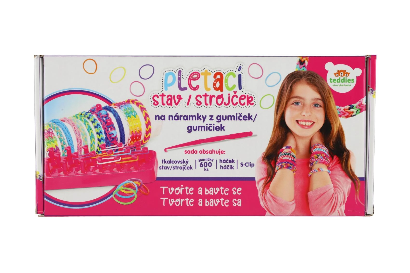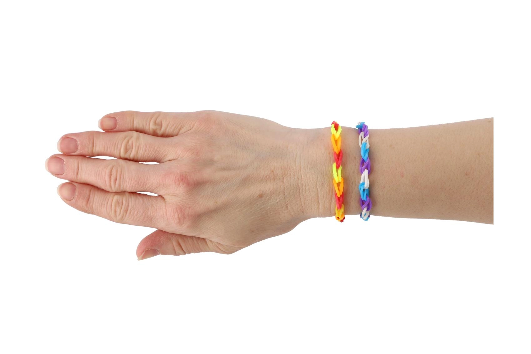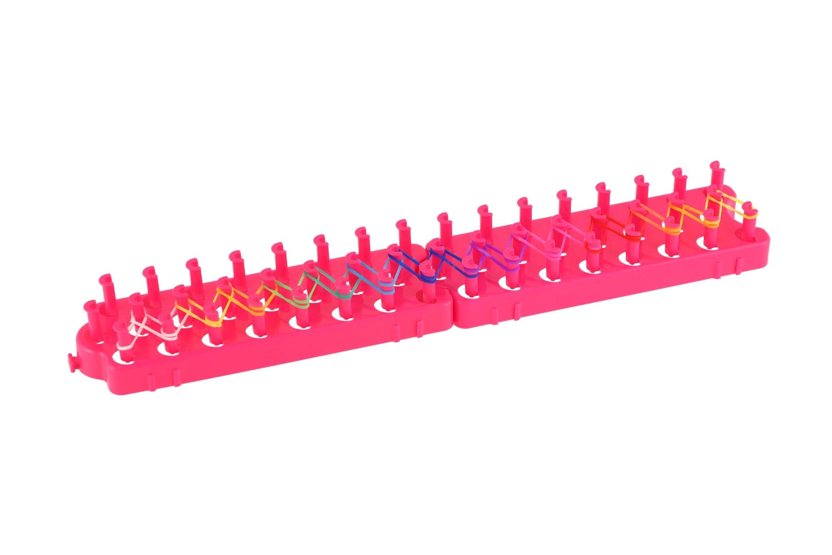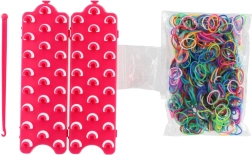Този пълен комплект за плетене с ластици предлага всичко необходимо за изработка на оригинални гривни и малки аксесоари. Благодарение на триредовия тъкачен стан ще създавате различни шарки – от простички до прецизно изплетени мотиви. 600 бр. силиконови ластика в пъстри цветове осигуряват безкрайни възможности за комбиниране.