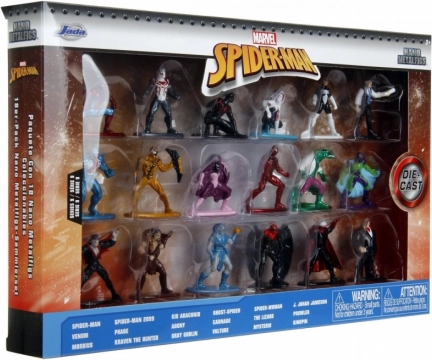 В кутията не липсват нито емблематичните герои, нито страховитите злодеи: Spider‑Man, Spider‑Man 2099, Kid Arachnid, Ghost‑Spider, Spider‑Woman, J. Jonah Jameson, Venom, Phage, Agony, Carnage, The Lizard, Prowler, Morbius, Kraven the Hunter, Gray Goblin, Vulture, Mysterio и Kingpin. Комплектът е чудесен подарък за малки и големи почитатели на комикси и филми.
