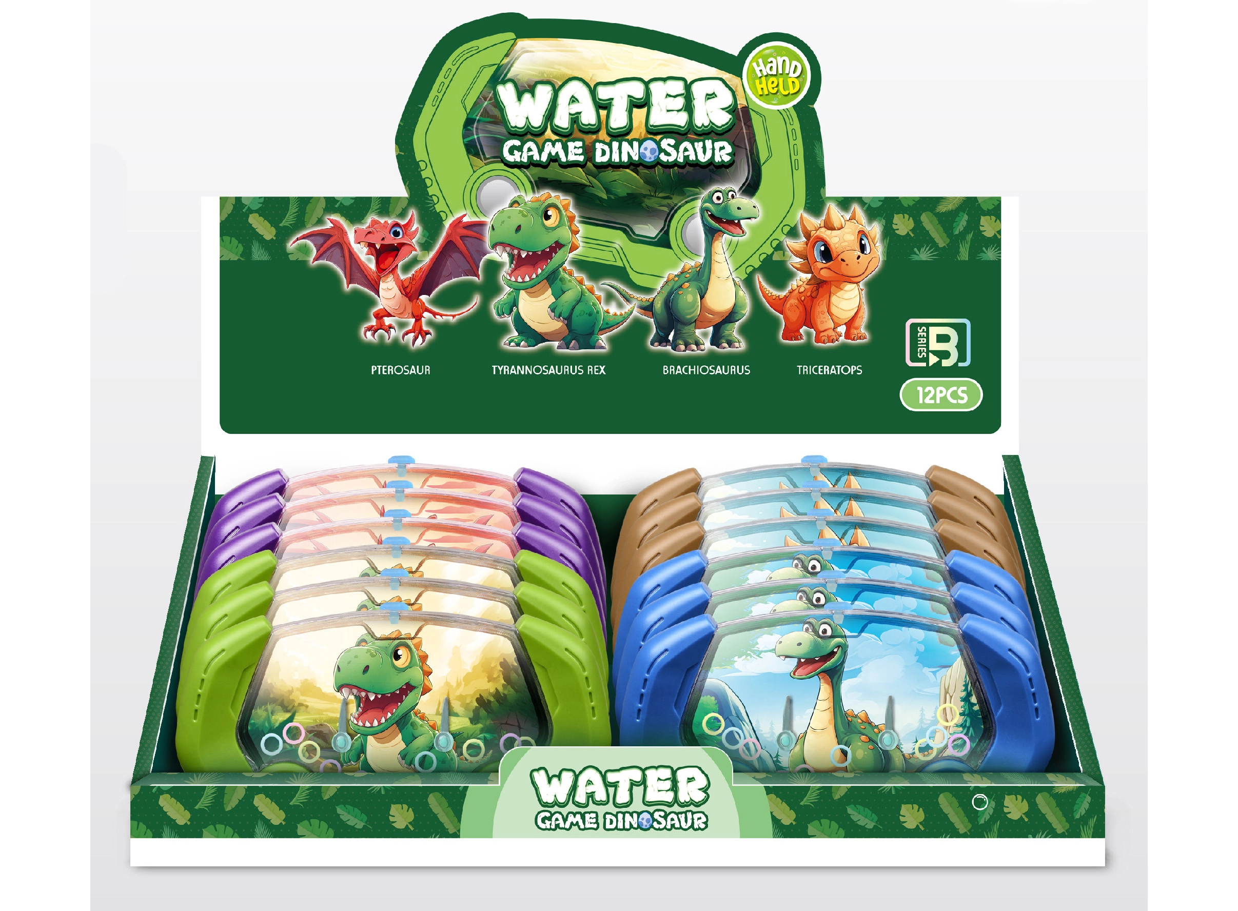 Насладете се на часове забавление с тази водна игра Динозавър, която е идеална за деца. С размери 17x10x3 cm тя удобно лежи в ръката и осигурява безкрайни възможности за игра. Тази игра се предлага в четири цветови варианта – кафяво, зелено, синьо и лилаво, което позволява на децата да изберат любимия си цвят.
