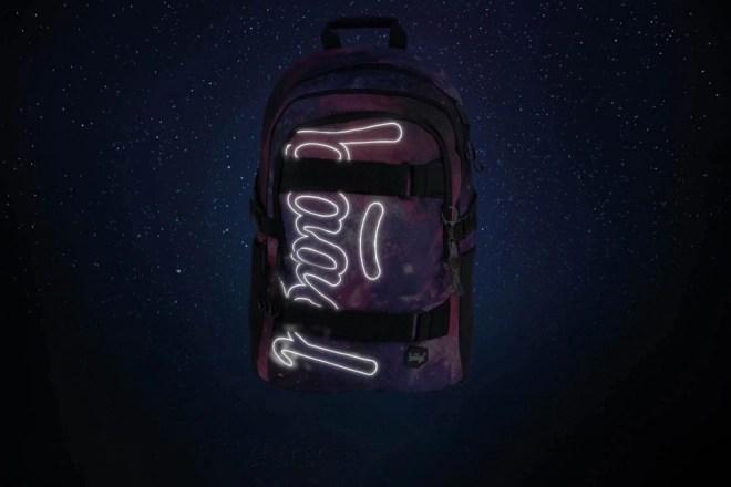 Стилен училищен сет BAAGL Skate Galaxy в космически дизайн ще зарадва всеки ученик. Включва лека ергономична раница с обем 25 l и отделение за 15" лаптоп, здрав пенал без пълнеж и практична мешка за резервни обувки. Раницата има ергономично оформен гръб, регулируеми презрамки, включително гръдна, ленти за скейтборд, светлоотразителни елементи и е изработена от водоотблъскващ материал. Целият сет се отличава с лека конструкция (850 g) и обмислена организация за удобно ежедневно носене.