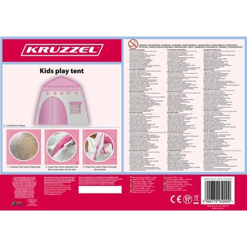 Очарователна детска палатка във форма на къщичка превръща всяка стая в магическо убежище за игра и отдих. Благодарение на леката конструкция и практичния калъф се пренася лесно и се сглобява бързо. В комплекта е включен светлинен гирлянд cotton balls на батерии с 20 светлини и дължина 2,8 m, който създава уютна атмосфера. Издръжлив материал, стабилна рамка и под гарантират безопасност при игра у дома и на терасата.