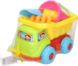 Забавен авто комплект за пясък с дължина 25 см, който ще зарадва всеки малък строител. В комплекта ще откриете количка, кофичка, лопатка, грябки и 2 формички – идеален за площадката и плажа.