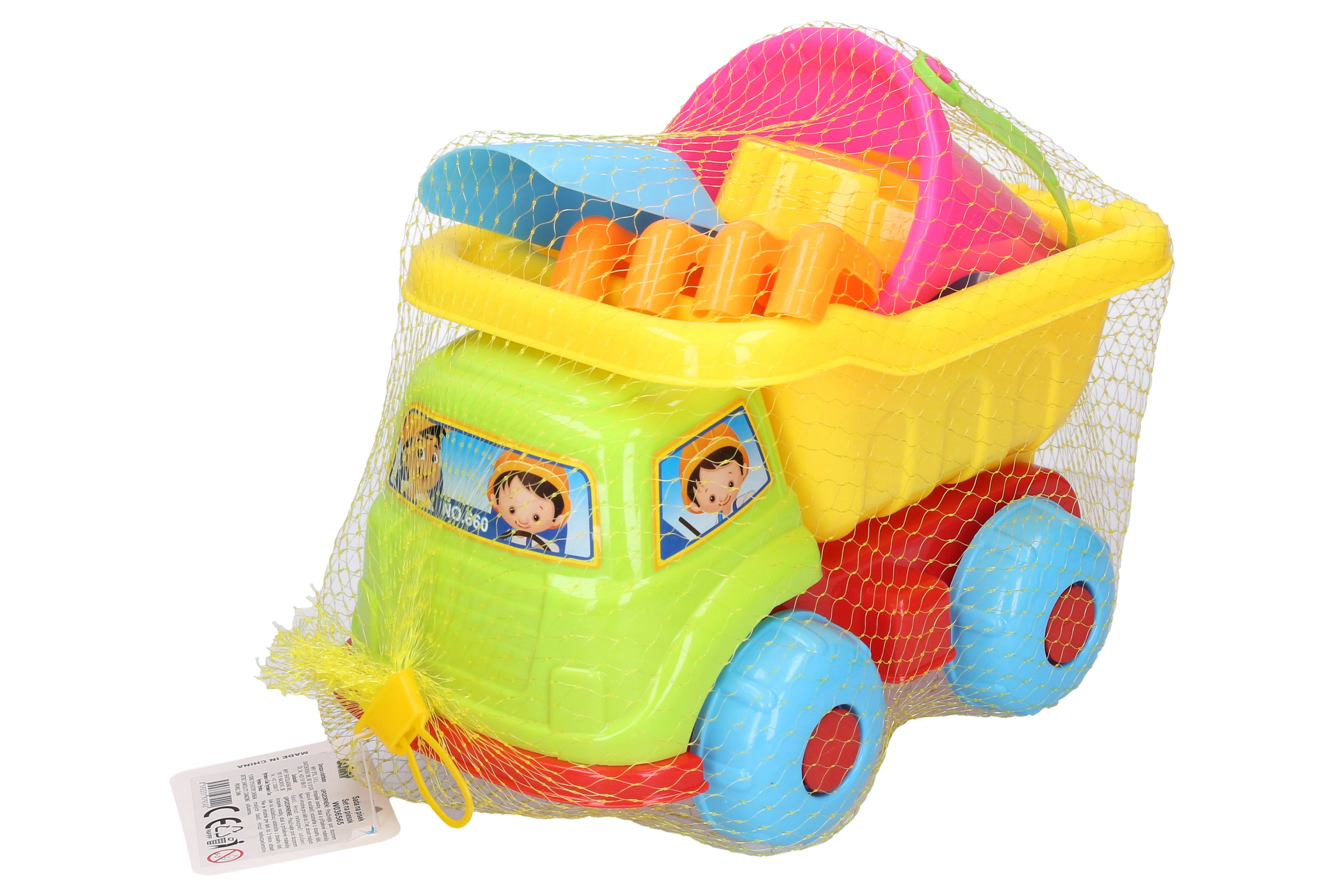 Този практичен комплект за пясъчник носи на децата часове творческо забавление. Здравата количка с дължина 25 см е допълнена от подбран набор любими пясъчни аксесоари, с които лесно се правят кулички, тунели и цели постройки.