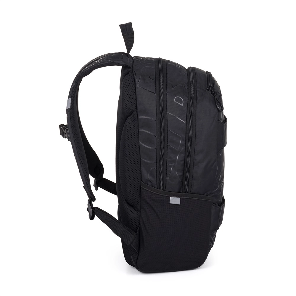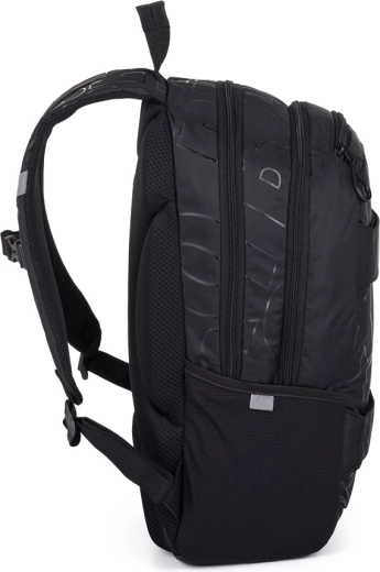 Вътре ще намерите подсилен джоб за лаптоп, карабинка за ключове и малък джоб за дребни вещи. Страничният джоб за бутилка и светлоотразителните елементи повишават практичността и безопасността при път към училище или из града. Част от комплекта е и здрав пенал с еластична лента за подредено съхранение на писмени принадлежности и дреболии.