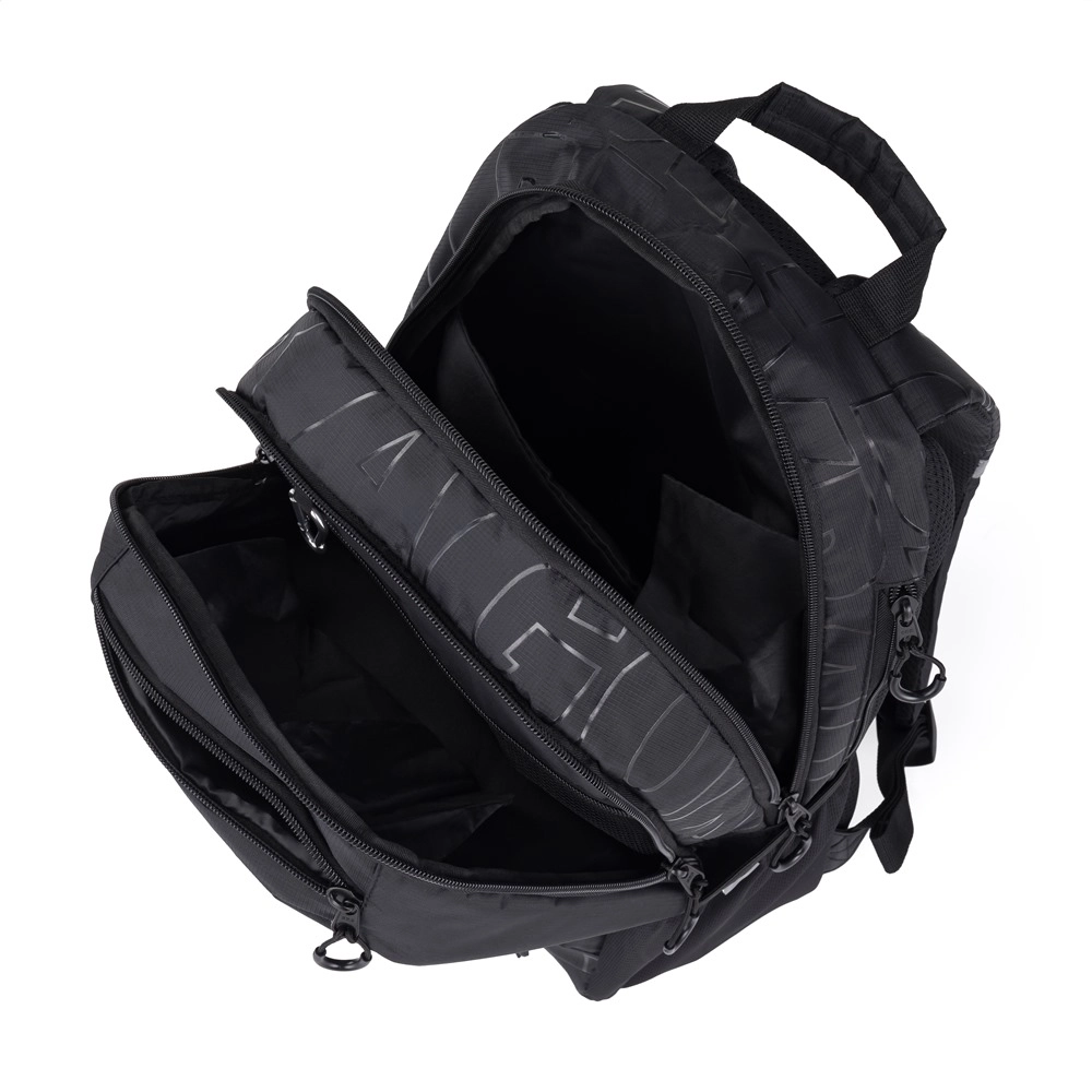 - 2 основни отделения, преден джоб, подсилен джоб за лаптоп, джоб за дребни вещи, карабинка за ключове, скрит джоб отзад, страничен джоб за бутилка
