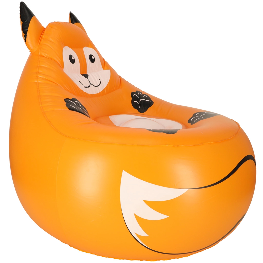 Очарователен надуваем фотьойл за деца в дизайн на лисица, който предлага страхотен комфорт, издръжлива PVC конструкция и лесно съхранение след изпускане. Благодарение на товароносимост до 70 kg е подходящ за деца на различна възраст и е чудесен както за детската стая, така и за двора.