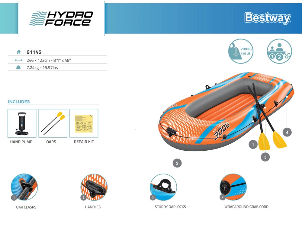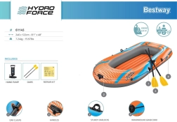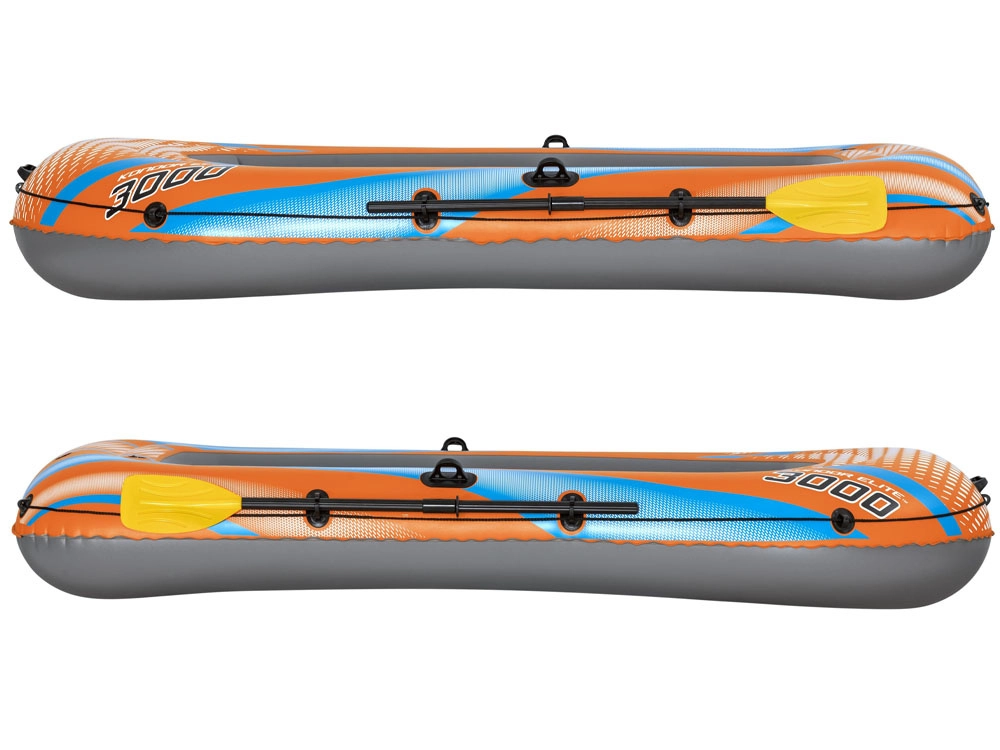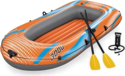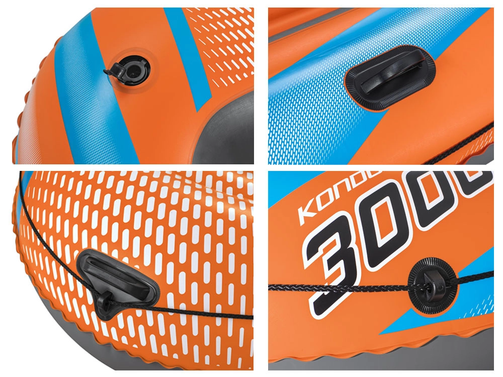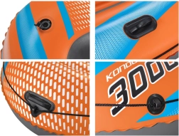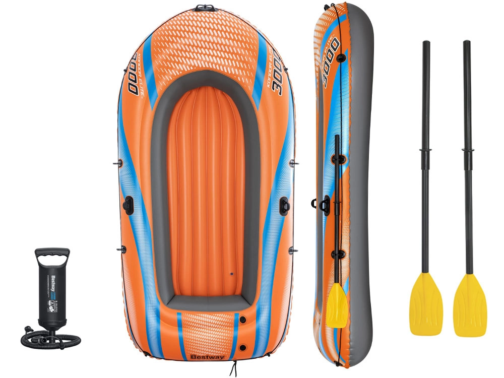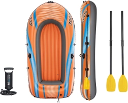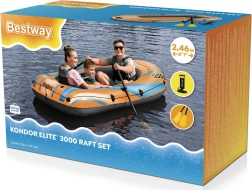 Надуваемата лодка BESTWAY Condor Elite 3000 е отличен избор за рекреационно плаване в спокойни води, отдих на езеро и семейни излети. Благодарение на здравия PVC материал и обмислената конструкция предлага стабилност, безопасност и комфорт. Максималната товароносимост 200 кг позволява удобно плаване за двама възрастни или родител с дете.
