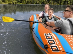 Две леки гребла, двудействаща ръчна помпа и ремонтна кръпка – тръгвате по вода веднага след разопаковане.