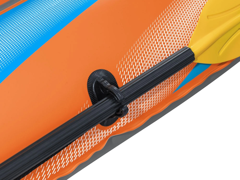 Надлъжно рифелованият надуваем под омекотява ударите и повишава стабилността при седене и гребане – идеален за по-дълги, спокойни разходки.